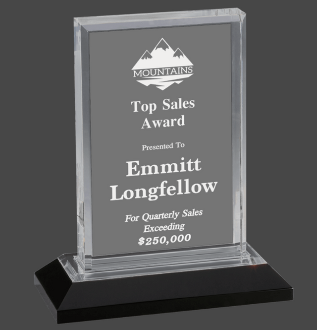 • Clear acrylic award with colored base