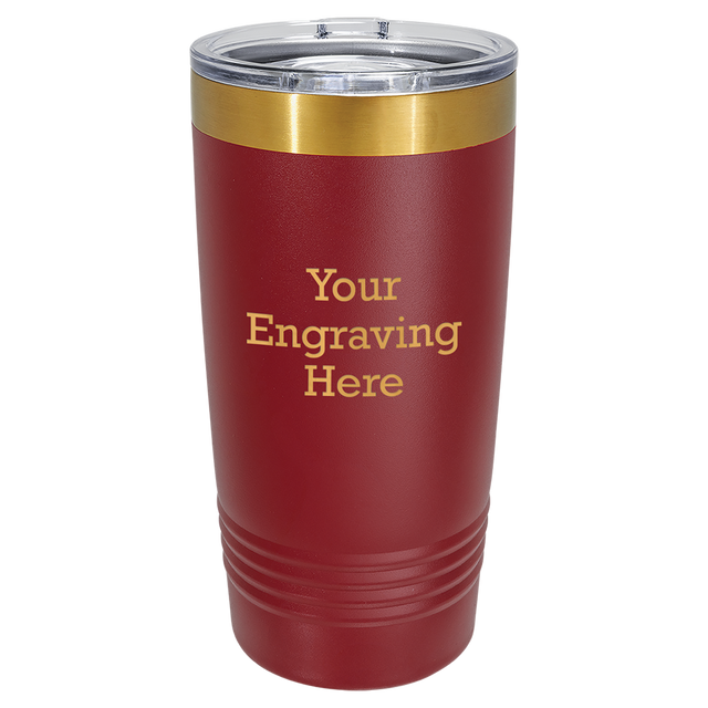 20oz Stainless Steel Ringneck Tumblers with Slider Lid. The superior hot & cold retention double wall insulated, high endurance tumbler! The mug has a narrower bottom to fit most standard cup holders. The unique Bright Gold ion-plated surface offers a subtly colorful finish when engraved, adding a luxurious and personalized touch that makes each sip special. Ideal for party favors or as personalized gifts, these glasses customize beautifully to match any occasion or personal style.