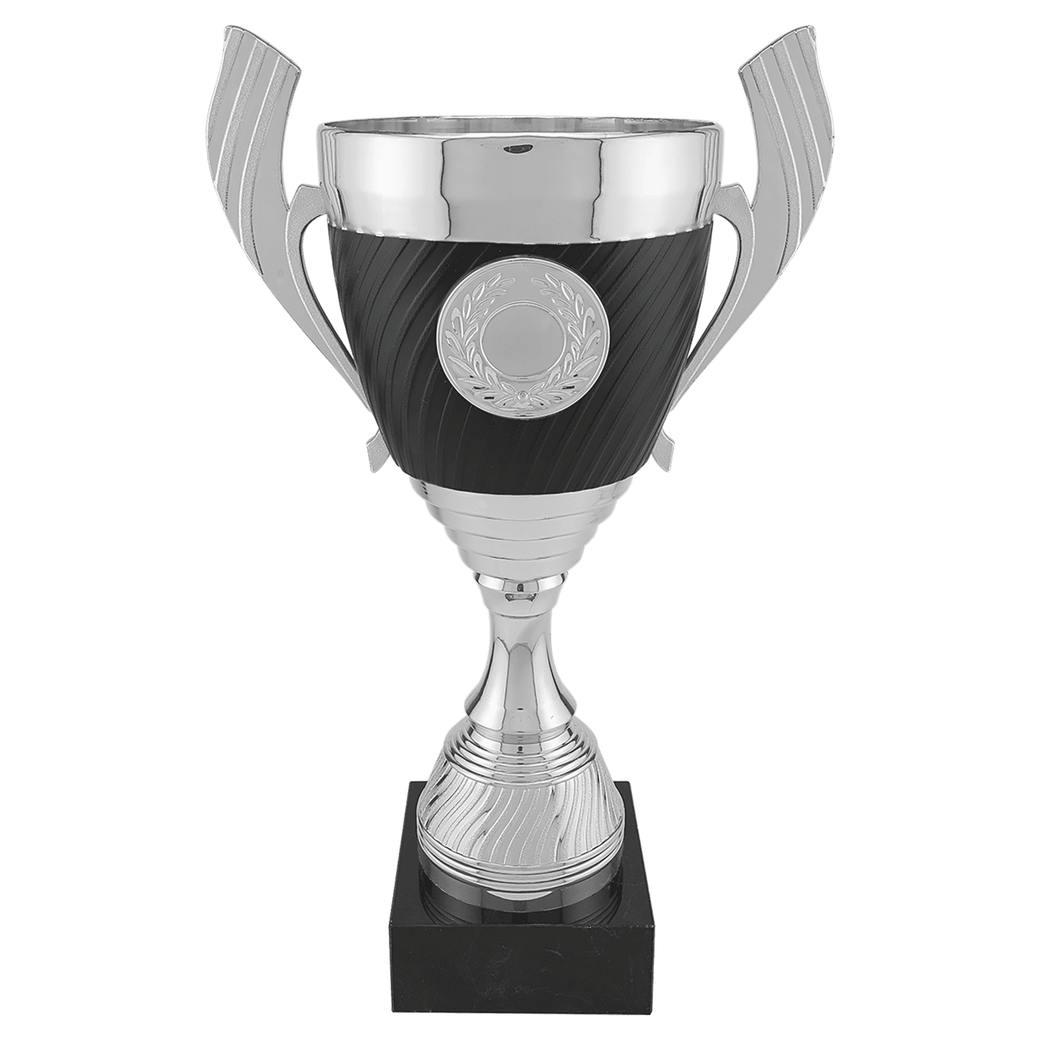 Recognize achievement with our classic plastic trophy cups, ideal for achievement, school programs, sports events, and special occasions. Each trophy features a gold or silver plastic cup mounted on a black base and includes a matching custom engraved trophy plaque adhered to either the marble base or the circle part of the trophy.